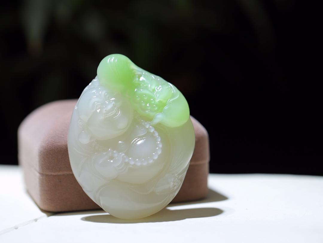 和田翠青弥勒笑佛,脂粉感强烈玉肉干净,结构细腻,让人心生欢喜,笑佛眉开眼笑欢天喜地,天增岁月人增寿笑开天下古今愁