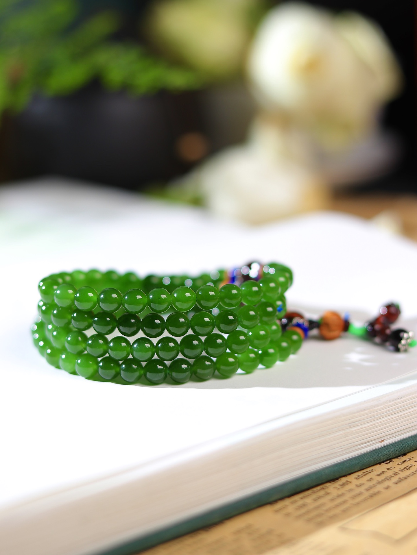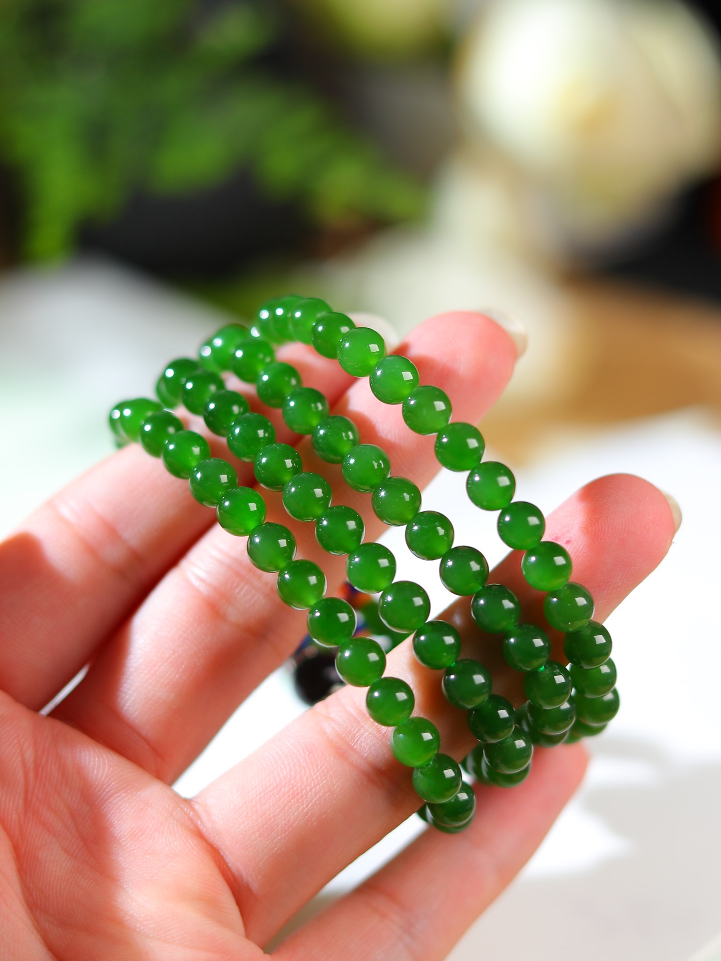 和田碧玉冰底108颜色好看,珠型精致,佩戴时尚潮流☁️